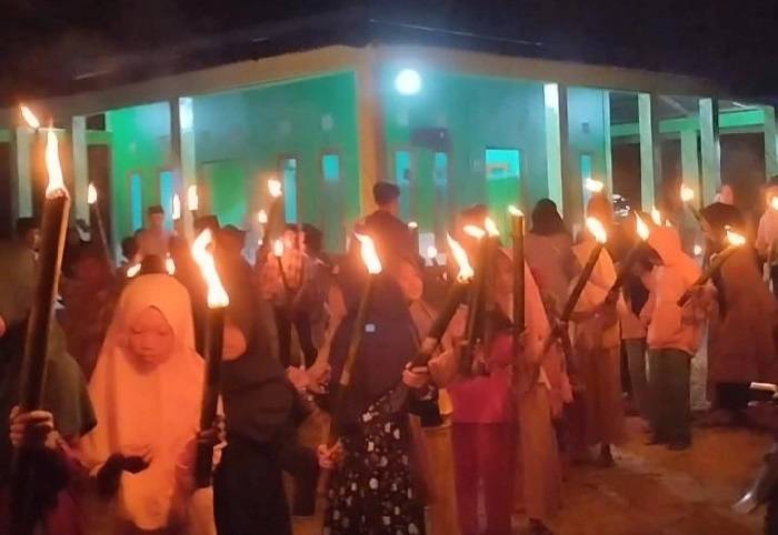 Mahasiswa Kukerta UNRI Desa Giti Adakan Pawai Obor