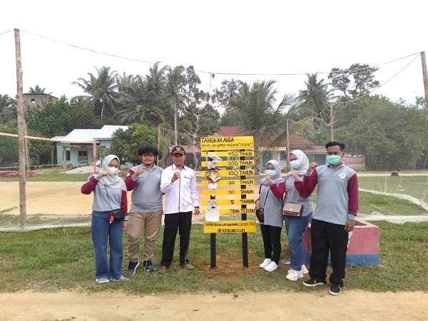 Mahasiswa Kukerta UNRI Desa Kencana Membuat Plang Sampah Sebagai Wujud Aksi Peduli Lingkungan