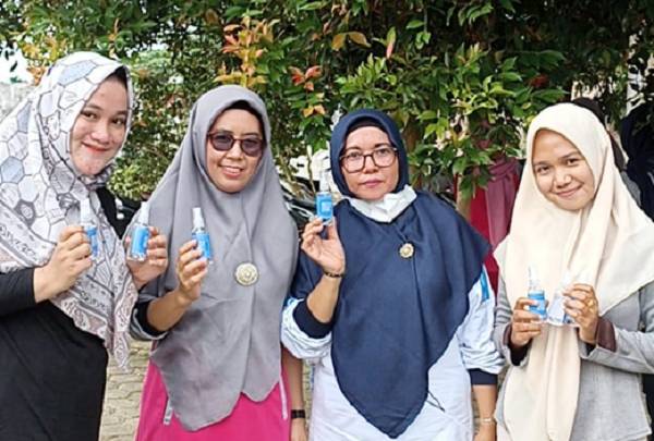 Mahasiswa Kukerta UNRI Desa Pulau Panjang Gelar Senam dan Bagi-bagi Jamu Serta Hand Sanitizer