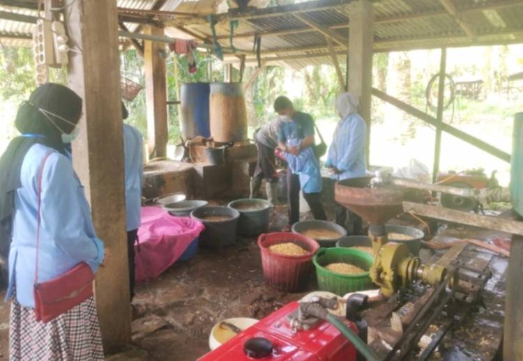 Mahasiswa Kukerta UNRI Desa Rambah Muda Kunjungi Pabrik Tahu