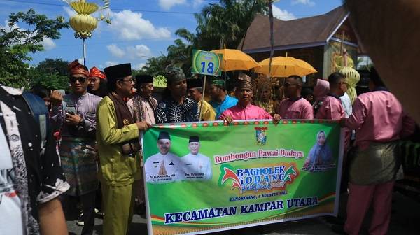 Mahasiswa Kukerta UNRI Desa Sawah Ikut Pawai Budaya Bagholek Godang