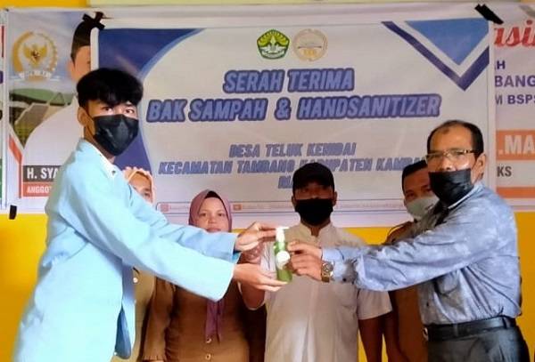 Mahasiswa Kukerta UNRI Desa Teluk Kenidai Produksi Hand Sanitizer dan Bak Sampah Untuk Masyarakat