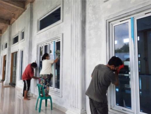 Mahasiswa Kukerta UNRI Ikut Goro di Masjid Haqqul Yaqin Desa Tarai Bangun