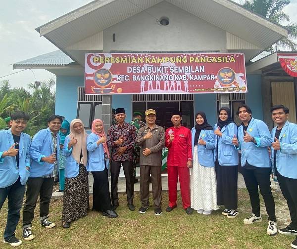 Mahasiswa Kukerta UNRI Ikut Meresmikan Desa Bukit Sembilan Menjadi Kampung Pancasila