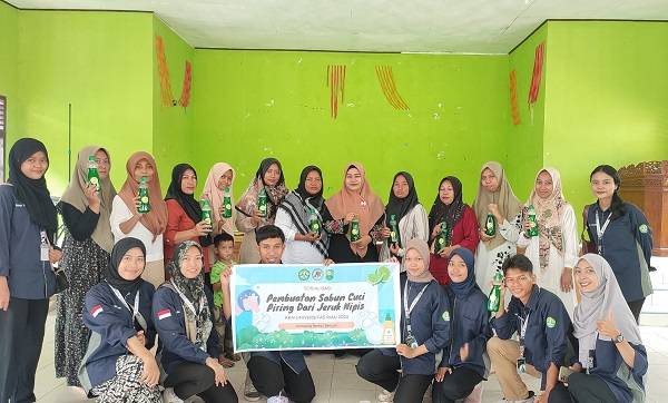 Mahasiswa Kukerta UNRI Sosialisasi Pembuatan Sabun Cuci Piring di Kampung Rantau Bertuah