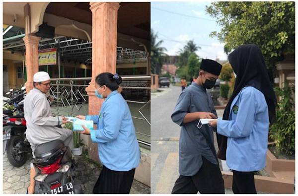 Mahasiswa Kukerta UNRI Tangkerang Barat Bagikan Masker Untuk Jamaah Shalat Jumat