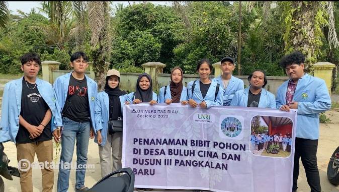 KAMPAR, datariau.com - Sembilan mahasiswa Program Studi Sosiologi Fakultas Ilmu Sosial dan Ilmu Politik (FISIP) Universitas Riau menggelar program penanaman pohon gratis yang diberi nama "Green Action Team" di dua lokasi pada Ahad, 9 November 2025. Program ini bertujuan meningkatkan kesadaran masyarakat akan pentingnya penghijauan dan pelestarian lingkungan.