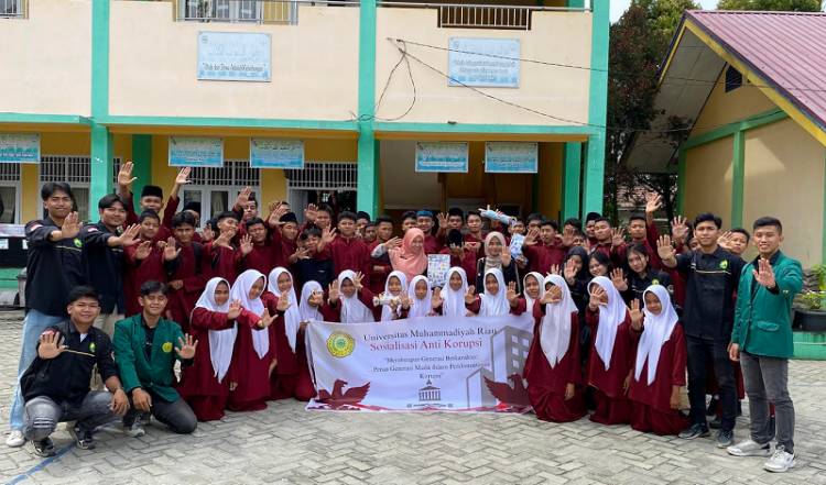 Mahasiswa Universitas Muhammadiyah Riau (UMRI) melakukan sosialisasi antikorupsi di SMPN 40 Pekanbaru, Jum'at (6/12/2024) pagi.