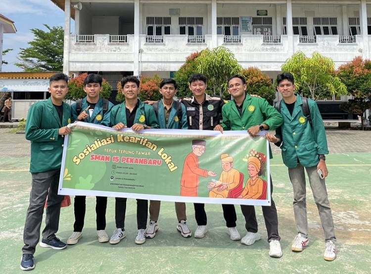 PEKANBARU, datariau.com - Mahasiswa Program Studi Ilmu Hukum Universitas Muhammadiyah Riau (UMRI) menggelar kegiatan sosialisasi budaya dengan tema "Tepuk Tepung Tawar: Suatu Kearifan Budaya Lokal Melayu Riau" di SMA Negeri 15 Pekanbaru.