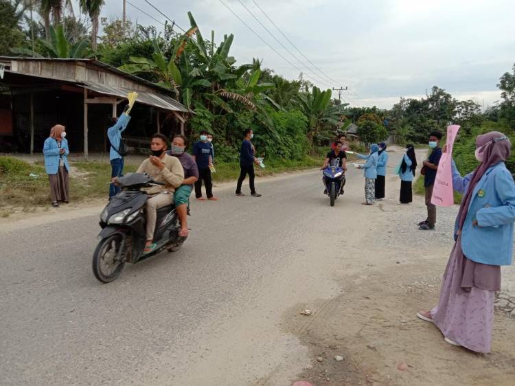 Mahasiswa Universitas Riau Bagi-bagi Masker Kepada Warga Kampung Tualang