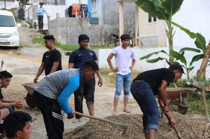 Mahasiwa KKN UMRI Kelompok 9 Ikut Serta Dalam Pembangunan Jalan di Kelurahan Bencah Lesung