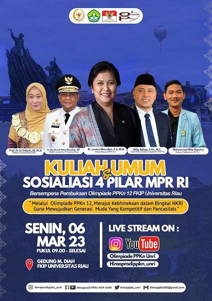 "Olimpiade PPKn ke-12 Tingkat Nasional pada tanggal 06-11 Maret 2023. Olimpiade PPKn Universitas Riau Tingkat Nasional ini bertujuan sebagai wadah ajang berpartisipasi dalam kemampuan di bidang akademik bagi seluruh siswa dan mahasiswa, tentunya bukan hanya yang ada di sekitaran kota Pekanbaru ataupun di Provinsi Riau saja akan tetapi diperuntukkan bagi seluruh Sekolah dan Perguruan Tinggi di luar kota Pekanbaru juga bisa mengikuti cabang perlombaan yang diadakan untuk tingkat nasional," terangnya kepada datariau.com melalui rilis, Ahad (26/2/2023).