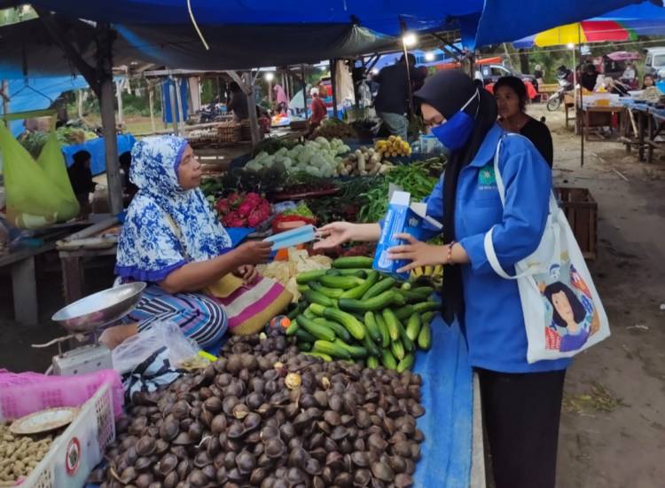 Peduli Covid-19, Mahasiswa KKN DR UIN Suska Bagikan Masker di Pasar Senen Laboy Jaya
