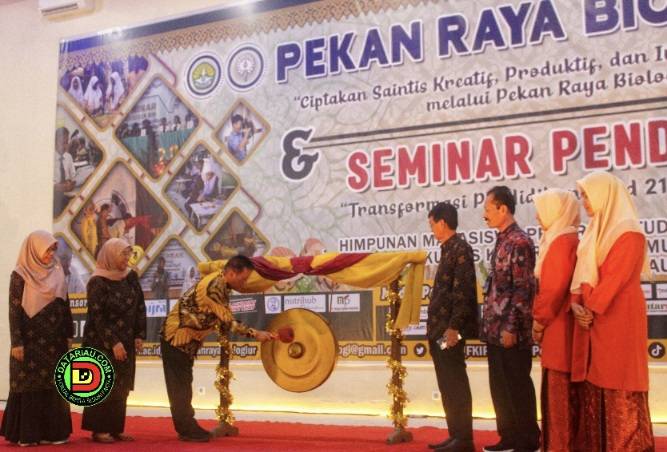 Acara Pekan Raya Biologi tahun ini dibuka dengan tarian persembahan, kemudian dilanjutkan dengan penyampaian kata sambutan oleh koordinator program studi Pendidikan Biologi FKIP Universitas Riau Dr Sri Wulandari MSi. Kemudian acara resmi dibuka dengan pemukulan gong oleh Kepala Bidang SMA Dinas Pendidikan Provinsi Riau Drs H Pahmijan MPd.