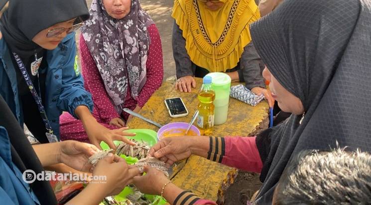 Kegiatan ini disambut penuh antusias oleh ibu-ibu Desa Muntai Barat dibuktikan dengan keaktifan bertanya dalam proses pembuatan maupun perencanaan lanjutan pengembangan UMKM abon ikan caru ini.