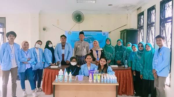 Pengabdian di Masa New Normal, Mahasiswa Kukerta UNRI Kelurahan Jaya Mukti Sosialisasi Cara Membuat Hand Sanitizer