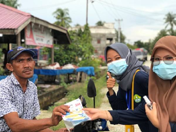 Pengabdian Mahasiswa Kukerta BK UNRI Bagikan Masker dan Handsanitizer Untuk Warga Desa Teluk Pambang