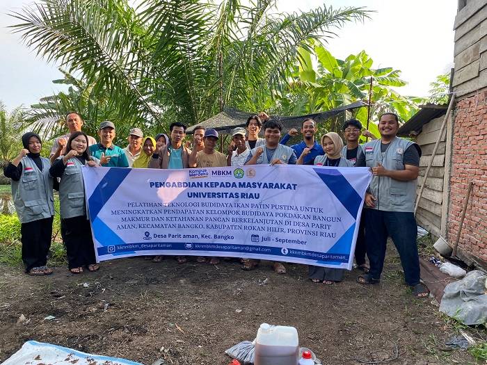 Tim pengabdian kepada masyarakat yang diketuai oleh Ir Rusliadi MSi dengan anggota Dr Iskandar Putra SPi MSi, Heri Masjudi SPi MSi, Dr Ir Eni Sumiarsih MSc, Annisa Mutamima B Eng M Eng, Pajri Ananta Yudha SP MP beserta mahasiswa Kukerta MBKM Desa Parit Aman melakukan pengabdian, berupa penerapan Teknologi Budidaya Ikan Patin Pustina pada Kolam Bioflok dengan Pemberian Probiotik dan Pakan yang Ditambahkan Rabal Kunyit Putih.