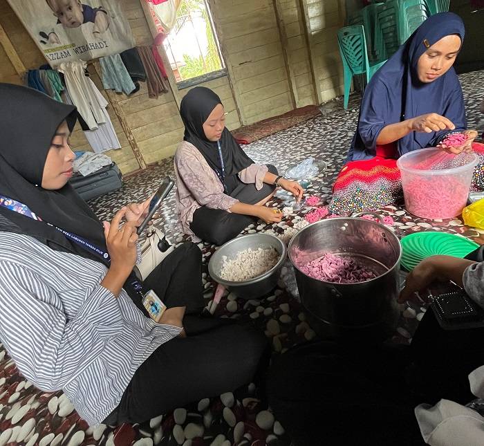 Mahasiswa Kukerta UNRI tidak hanya melihat proses pengolahannya saja, tetapi juga ikut serta dalam beberapa tahapan seperti pengupasan kelapa, pengirisan, perebusan hingga finishing.