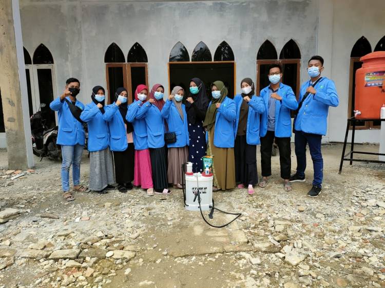 Penyemprotan Disinfektan di Masjid Al-Ikhlas Dusun Sei Embacang Oleh Mahasiswa KKN DR Plus UIN Suska Riau