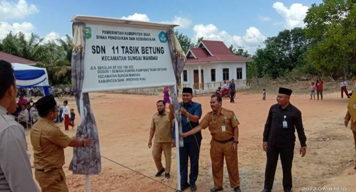SIAK, datariau.com - SDN 11 Tasik Betung, Kecamatan Sungai Mandau, Kabupaten Siak yang dibangun dengan APBD Siak tahun 2021, diresmikan oleh Plt Kepala Dinas Pendidikan dan Kebudayaan Kabupaten Siak, H Mahadar SPd MM, Senin (18/7/2022).