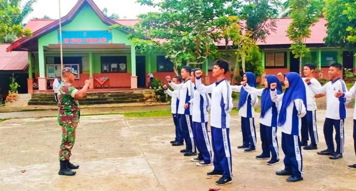 Puluhan Pelajar SMPN 3 Rambah Samo Mendapat Pelatihan PBB dan Wawasan Kebangsaan