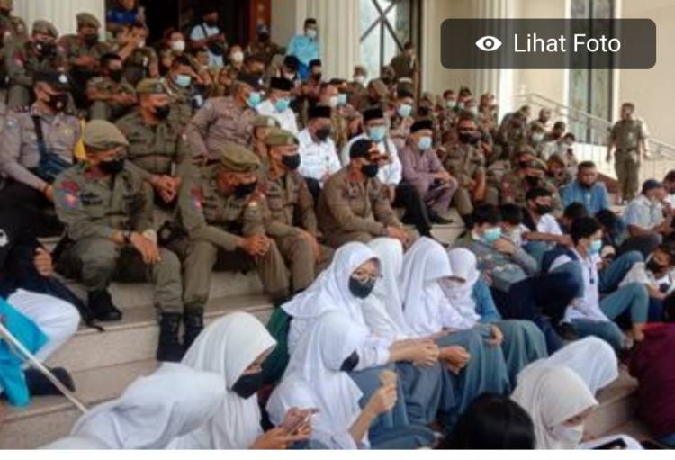 DATARIAU.COM - Ratusan siswa dan Orangtua Demo kantor Gubernur Jambi untuk menuntut agar tetap bisa sekolah di sekolah negeri.