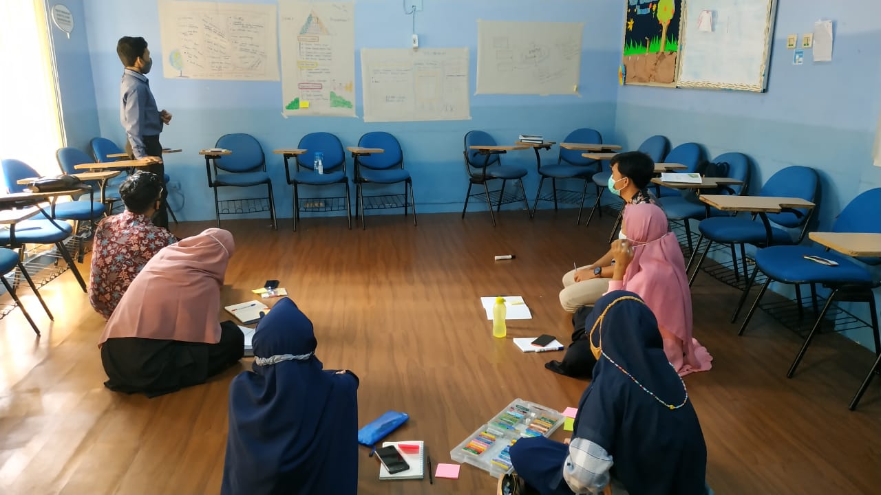 Suasana teman-teman relawan literasi sedang mengikuti pembekalan di Lembaga Pengembangan Insani.