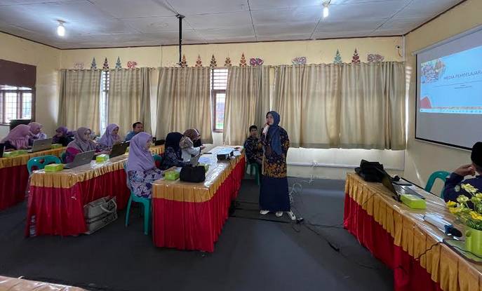 Tim Dosen PBSI FKIP UNRI Melaksanakan Pelatihan Implementasi Pembelajaran Berdiferensiasi melalui Media Berbasis PowerPoint Terintegrasi ClassPoint di SMPN 4 Tambang