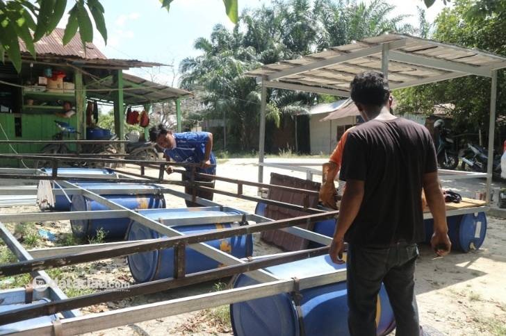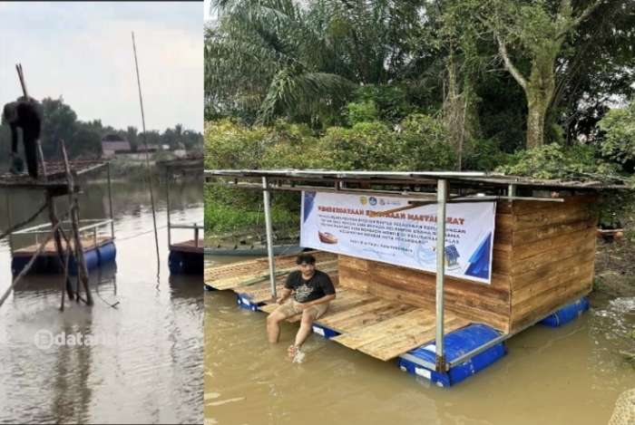 Tim Dosen UMRI Buatkan Rumah Apung Dilengkapi Panel Surya 100Wp Untuk Nelayan DAS Sungai Siak di Palas