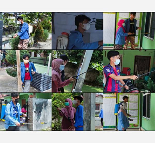 Tim KKN UIN Suska Riau Desa Tarai Bangun Lakukan Penyemprotan Disinfektan