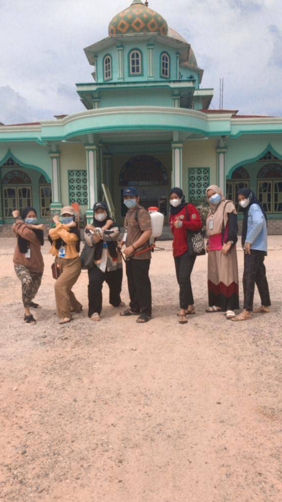 Tim Pengabdian Kukerta Balek Kampung 2021 Unri Melakukan Penyemprotan Disinfektan di Desa Kasikan