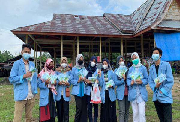Tim Pengabdian Kukerta BK UNRI Bagikan Masker di Pasar Minggu Desa Sumber Datar