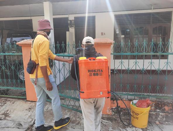 Tim Pengabdian Kukerta Integrasi UNRI 2021 Melakukan Penyemprotan Disinfektan di Kelurahan Tangkerang Utara
