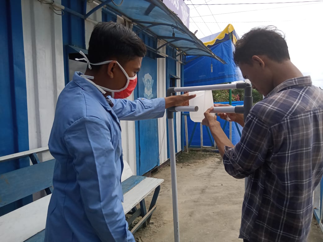 Tim relawan Covid-19 Kukerta Unri Membuat Inovasi Alat Penyangga Sabun Cuci Tangan