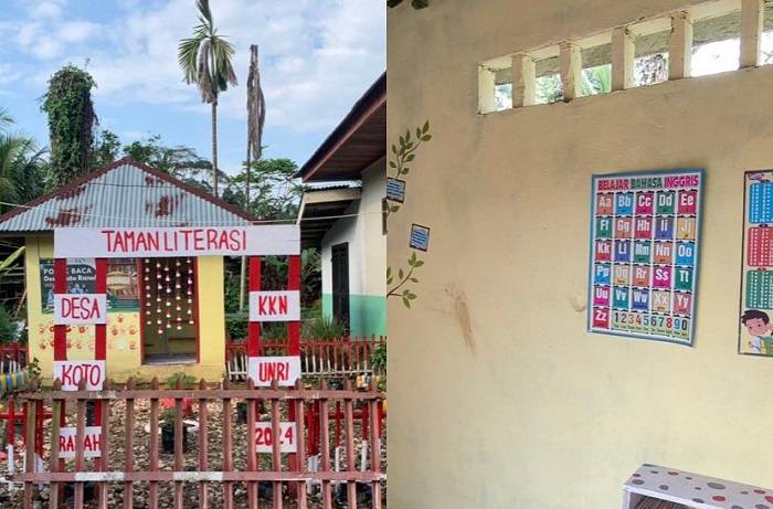 Tingkatkan Literasi Anak-anak di Desa Koto Ranah, Mahasiswa KKN UNRI Membuat Taman Literasi