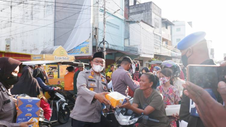 Polres Rohil Bagi Takjil Ke Masyarakat di Bagan Siapi-api