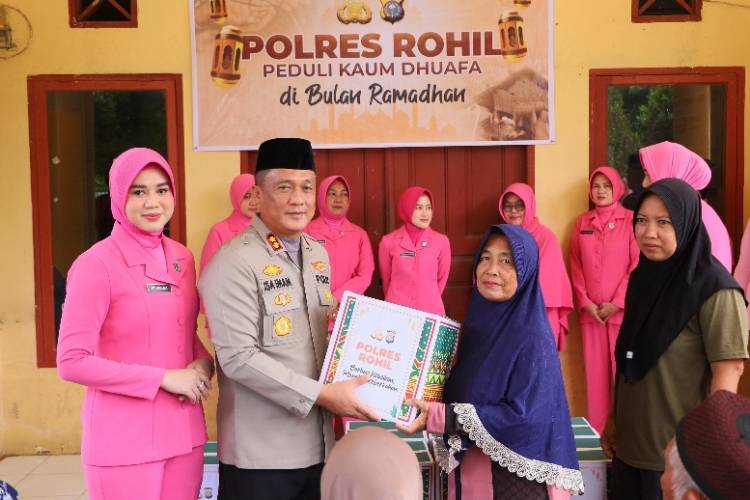 Polres Rohil Salurkan Bantuan Sembako untuk Kaum Dhuafa di Rantau Kopar