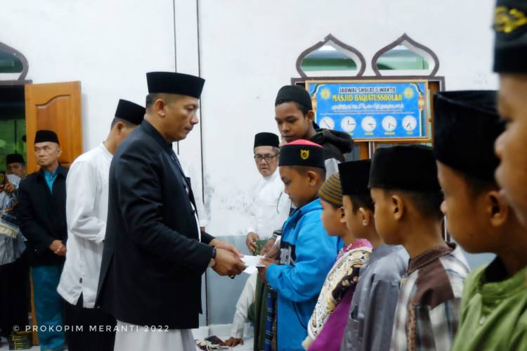 Berikutnya dilanjutkan dengan penyerahan Santunan Anak yatim, bantuan Kain Sarung dan Sembako bagi pengurus Masjid Baqiatussholah oleh Bupati Meranti H Muhammad Adil SH MM dengan diiringi sholawat. Dalam pengarahannya Bupati Meranti H Muhammad Adil SH MM menyampaikan bahwa dia mengatakan agar meminta Do'a kepada Allah SWT agar mendapatkan Rezki yang berlimpah.