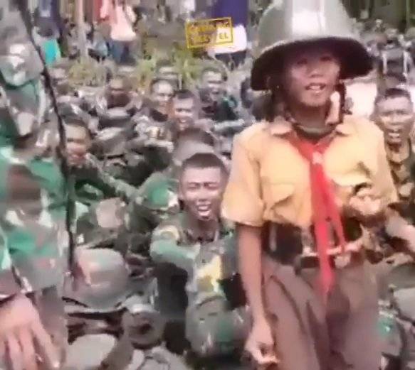 DATARIAU.COM - Video berdurasi 53 memperlihatkan seorang bocah mengenakkan seragam paramuka, memberikan komando untuk para prajurit TNI mendapat banyak pujian dari netizen. Sebab, dalam video itu tampak para prajurit TNI ikut dengan komando yang diberikan bocah tersebut.