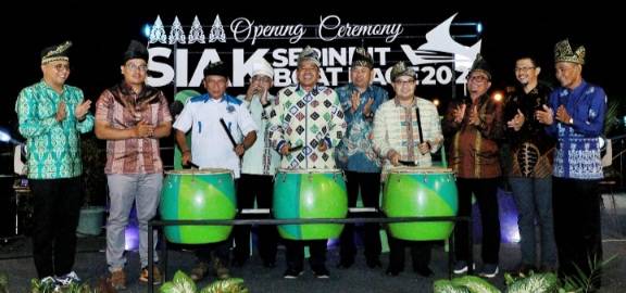 Pembukaan oleh Bupati Siak Drs H Alfedri MSi di dampingi Sekretaris Dinas Pariwisata Riau dan Kabid Perlombaan Pengurus Besar Persatuan Olahraga Dayung Seluruh Indonesia (PB PODSI) Benny F Tamaka, Jumat (15/12/2023) malam.