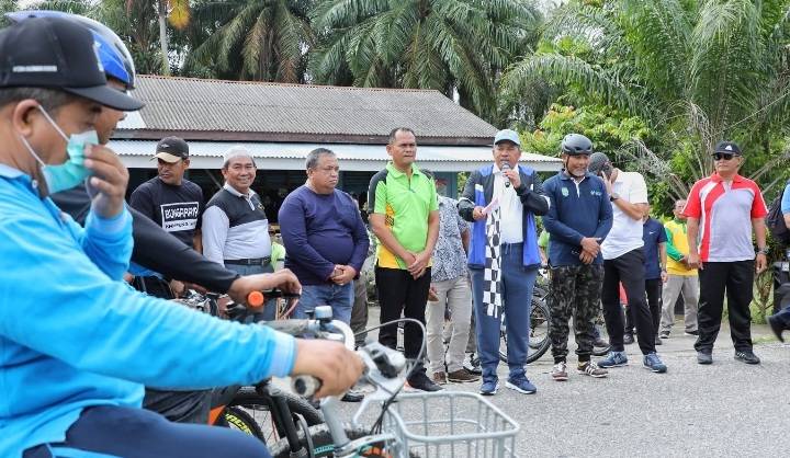 Bupati Siak, Drs H Alfedri MSi lepas peserta Tour de Sawah di Desa Langsat Permai, Bungaraya.