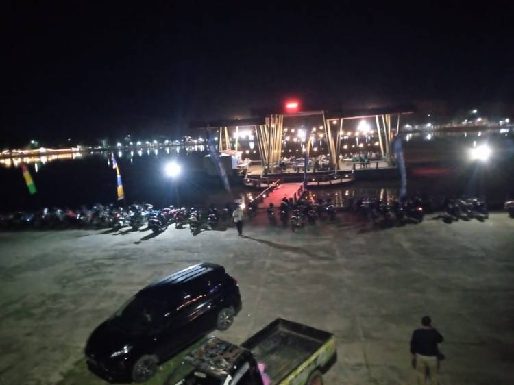 Seperti pada malam Minggu (22/10/2022), terlihat objek wisata danau raja banyak dikunjungi wisatawan lokal yang menikmati malam Minggu bersama keluarga dan rekan rekanya.